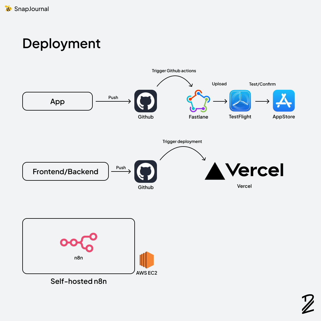 Finally, the last part: deployment. For the web services, Vercel did all the heavy lifting, so basically all I had to do was push the code to GitHub.